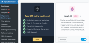 ⚡️ Neue Informationen Stand: 10.08.2025Unmittelbar nach der Veröffentlichung dieses Beitrags hat Rank Math ein Update eingespielt, das Nutzern nun zusätzliche KI-gestützte Funktionen bereitstellt.